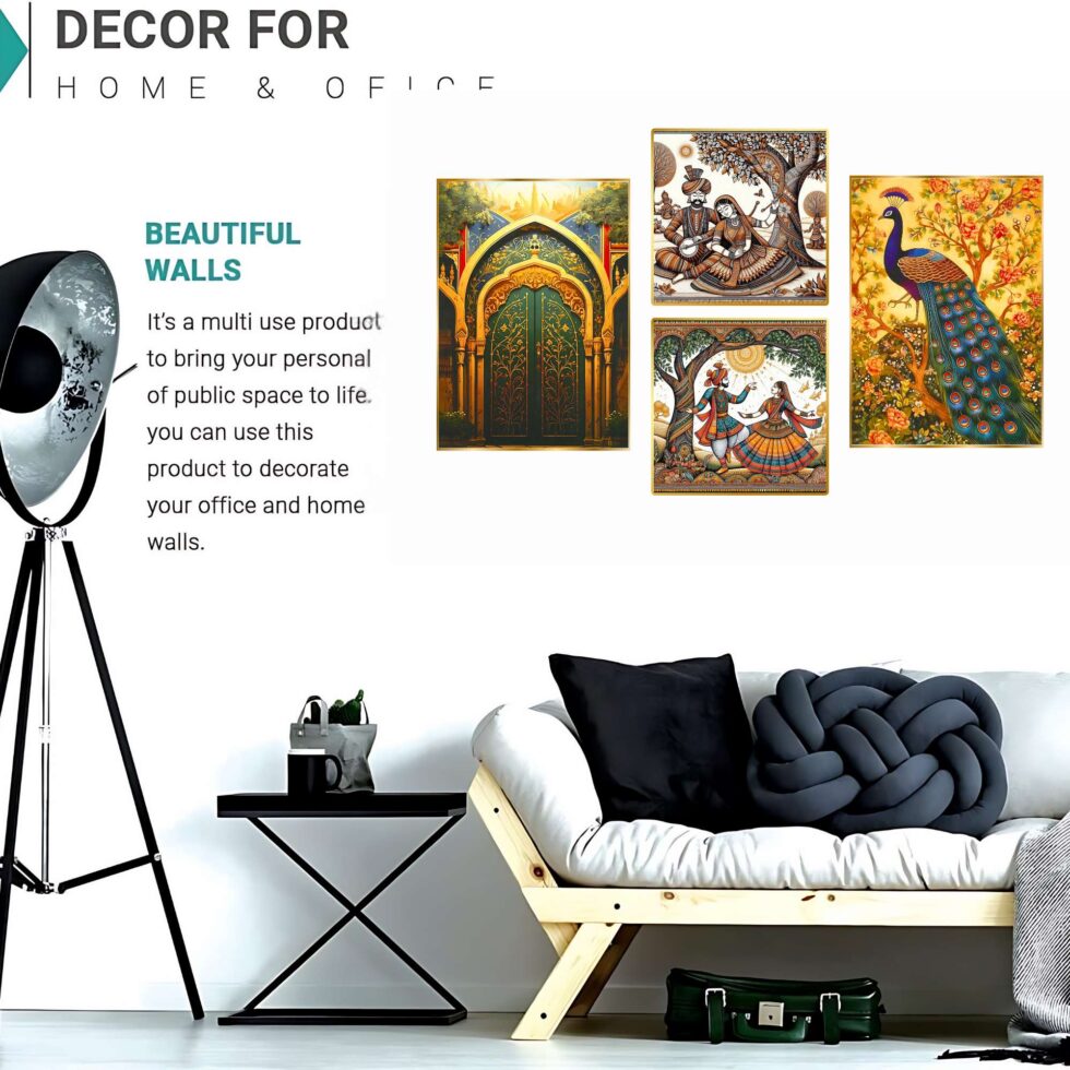 wall paintings, designed to elevate any room with their vibrant traditional charm. Perfect for a variety of settings, these intricate pieces are ideal for wall decor, whether you’re seeking artwork for your living room or bedroom. Our collection includes bold and large wall paintings that create a striking focal point, especially as big wall paintings for the living room. paintings are perfect for home decoration, seamlessly fitting into any space as wall art for living rooms or framed wall paintings for bedrooms. Whether you choose wall paintings with frames for the living room or bedroom, these pieces add an elegant, cohesive touch to your decor. Beyond living areas, these paintings also make beautiful kitchen wall decor and versatile wall hanging options. Enhance your living room wall decor with framed wall art that complements any style. Choose from various formats, including wall paintings golden frame,allowing you to customize your space with ease. Each painting blends traditional and abstract styles, offering both framed wall paintings and wall art decor that fit effortlessly into any room. Explore the beauty of art and bring a touch of culture and sophistication to your home with these exquisite wall paintings for decoration.